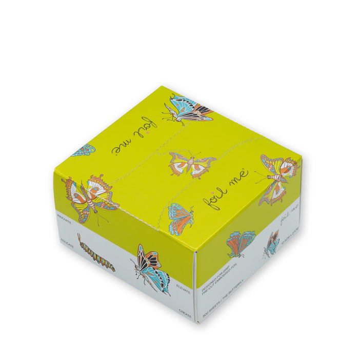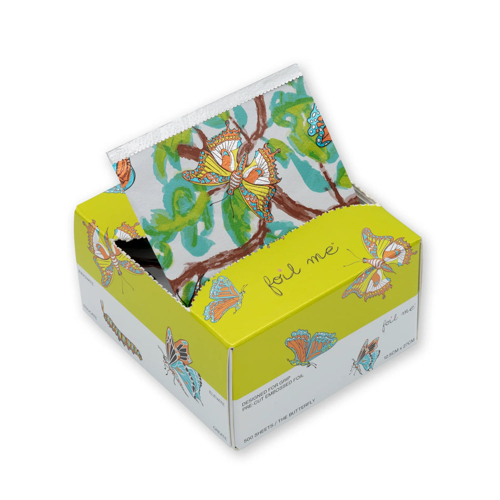 - Minimise time, conserve product and improve efficiency with Foil Me’s signature embossing, pre-cut foil sheets, convenient 'tissuebox' dispensing, and unique hand-drawn design.
