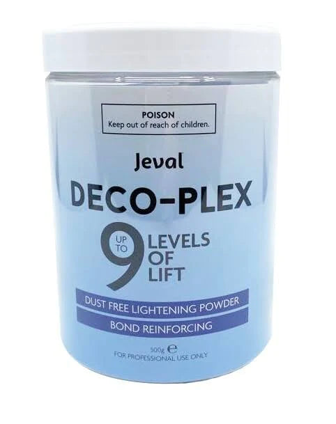 Jeval Deco-Plex dust free lightening powder can lighten up to 9 levels whilst protecting the hair fibre thanks to bond reinforcing properties.
