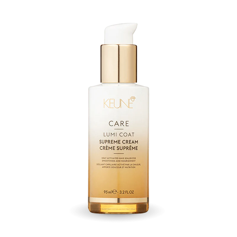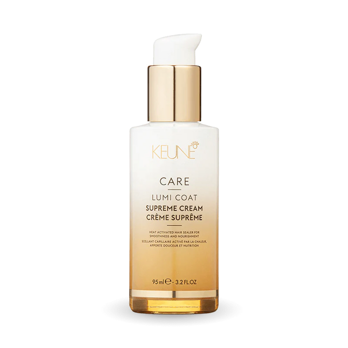 The high-quality gel-like cream contains fiber sealing technology to smooth out coarse and frizzy hair. Divide the Lumi Coat Supreme Cream over towel-dried hair, and blow-dry the hair in the desired model. The Vegan formula gives the hair heat protection up to 230ºc.
