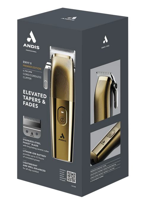 The Andis Envy II Clipper is a professional-grade hair clipper designed to deliver exceptional performance and precision. It's a popular choice among barbers and stylists due to its powerful motor, customizable blade, ergonomic design, and cordless convenience.