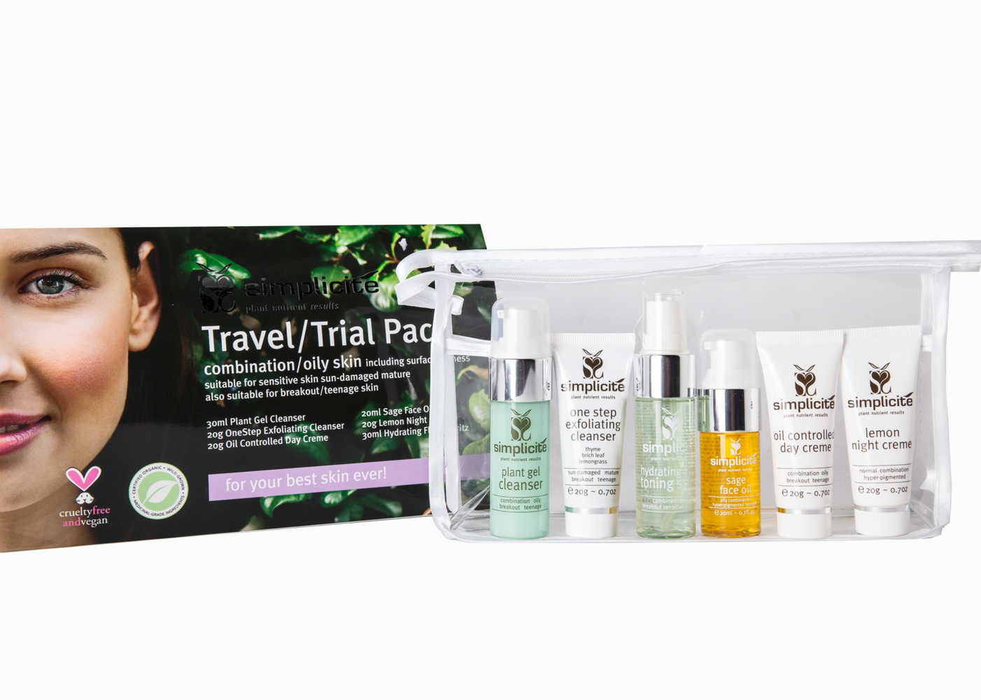 These small sizes of Simplicité Basic Six products are the perfect way to begin transforming your skin with concentrated plant nutrients.